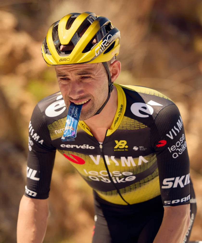 The Energy Fruit Chew, formerly known as the Amacx Turbo Fruit, is a candy composed of a specially developed and improved ratio of glucose and fructose carbohydrates (2:1). The two-to-one ratio of glucose and fructose ensures rapid carbohydrate absorption, supporting your energy supply (glycogen). Energy Fruit Chew is easy to carry and quick to eat, making it suitable for consumption during exercise. Available in Cassis, Orange, and Piña flavors.
